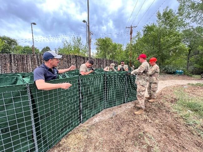 In the case of the NFFMC, the HESCO barrier is their product of choice and have deployed over 65 linear miles of this product for good reason. The HESCO barrier is fast to deploy, can be stacked to achieve any height/width required, and can be built in the most difficult of terrains encountered. Additionally, the HESCO flood barrier has the best stopping power when it comes to violent flood events like debris flows, hurricane storm surges, or flood events where debris impact from trees, rocks, and the like are expected. When failure is not an option, HESCO is the most widely used and proven barrier in the country!