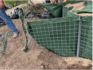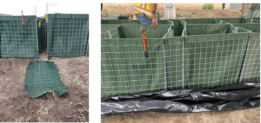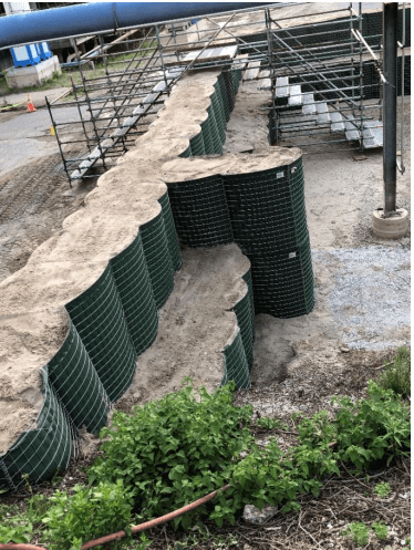 Below, are some pictures and examples of the deployment of the HESCO flood barrier as well as some unique modifications we were able to do with the product during this deployment.