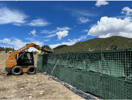 When you are building HESCO flood barriers for wildfire debris flow and flood protection wildfire burn scar areas, we like how simple it is to add stability in the form of extra cells anywhere within your floodwall. It is simple and inexpensive to install ‘buttress walls’ or ‘buttress cells’ to a line of HESCO Bastion for added stability as desired. The photos above show how we were able to take a few cells and attach them to main line of HESCO Bastion close to where the floodwall ties into to an earthen berm on either side of the facility being protected for some easy reinforcement at this tie-in point. Perhaps this could be considered ‘overkill’, but the speed and ease associated with simply adding some buttress cells along the way gives us added comfort when floodwaters arrive and are near the top of your barrier! These buttress cells can be added during construction or even years later as desired.