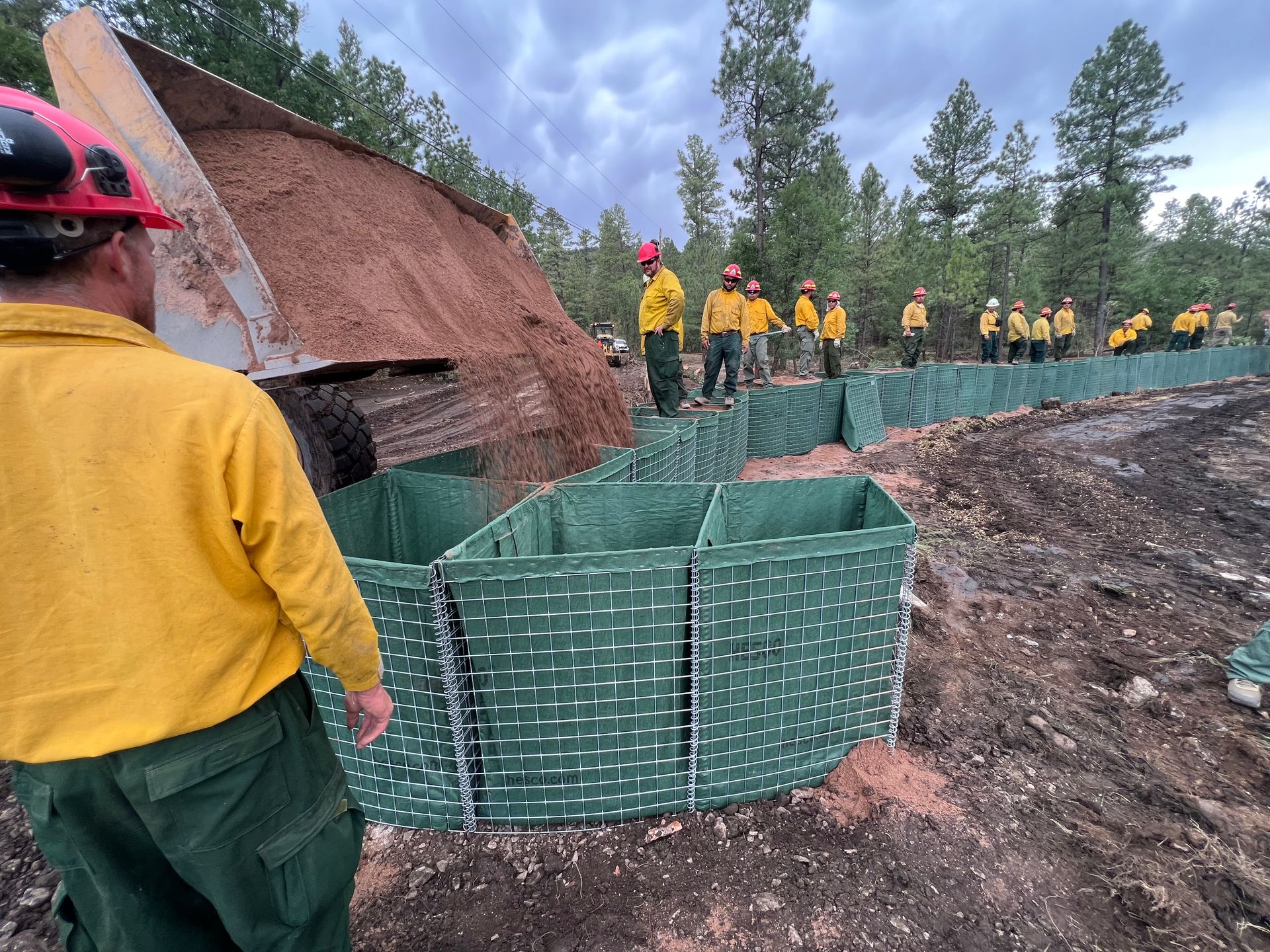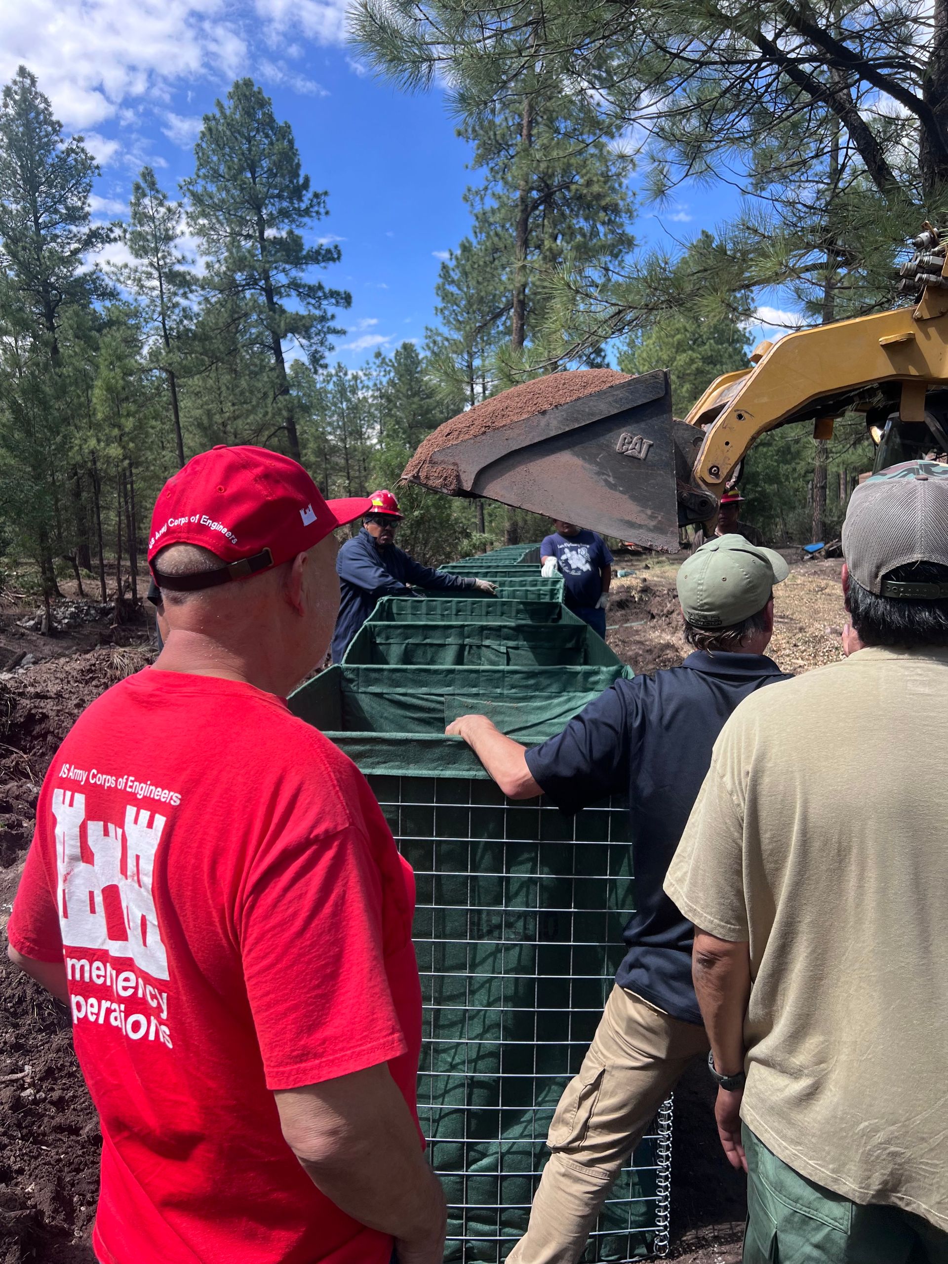 During this deployment, Flood Defense Group supported the US Army Coprs of Engineers within the emergency operations center and an ‘alphabet soup’ of other organizations who work together to respond to these disaster events and support long term recovery efforts within the area. Flood Defense Group arrived to find a flurry of organizations actively supporting this effort. We were behind the front-line of the ongoing fire disaster to assist in spearheading the new flood defense effort by installing flood barriers to protect against the impending debris flows that generally follow forest fires within the burn scar areas.